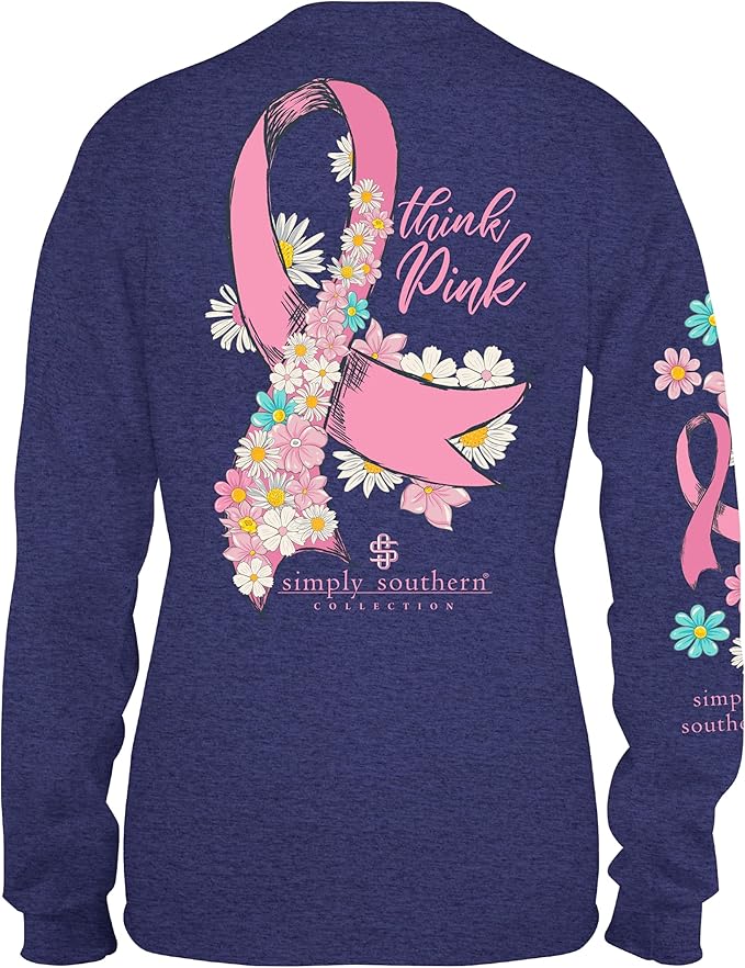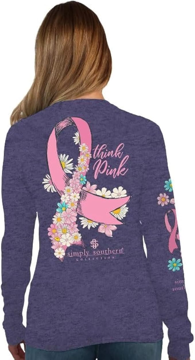 Show your support in style with this comfortable and stylish Simply Southern Think Pink Cancer Long Sleeve T-Shirt. It's perfect for both casual and dressy occasions, making it ideal for everyday wear. Share your commitment to the fight against cancer in fashionable and meaningful way.